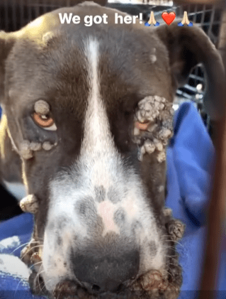In the cold shadows of an abandoned warehouse, a small, trembling dog hid from the world. Her fragile body was covered in painful warts, her fur matted with dirt and fear. Each breath was a battle. Each sound, a threat.