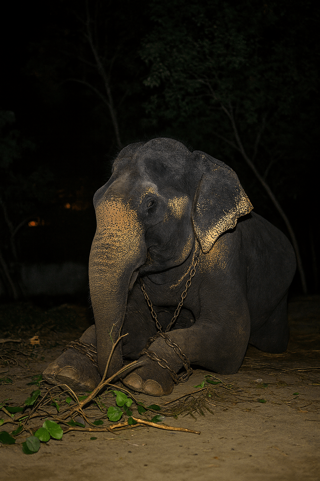 At night, when the sky above the sanctuary turns dark and still, Raju lies down beneath the stars. No chains. No pain. Just the gentle hum of crickets and the rustle of leaves in the warm wind.