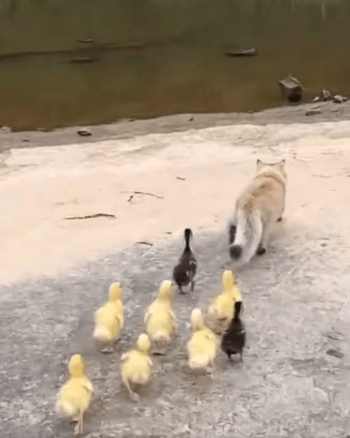 It’s not something you see every day—a cat leading a group of ducks as though she were their mother. But for this feline, motherhood came in the most unexpected way imaginable.