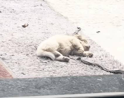 I knelt beside him and gently reached out my hand. To my surprise, he lifted his head just enough to meet my touch. Despite his weakness, he even rolled slightly to show me his belly, as if asking for comfort. His fur was dirty and covered with bugs, his body frail and trembling, but beneath the dirt, I could tell he was a beautiful little dog.